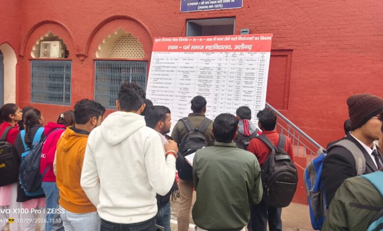 अलीगढ़ : धर्म समाज महाविद्यालय में एक दिवसीय वृहद रोजगार मेले का आयोजन क्षेत्रीय सेवायोजन कार्यालय, मॉडल करियर सेंटर एवं धर्म समाज महाविद्यालय के संयुक्त तत्वावधान में किया गया। जिसमें निजी क्षेत्र के 20 नियोजकों के सापेक्ष 708 प्रतिभागियों द्वारा प्रतिभाग़ कर 574 अभ्यर्थियों का चयन किया गया। मेले का शुभारंभ डॉ0 पीव पीव सीव शर्मा, क्षेत्रीय सेवायोजन अधिकारी एवं मुकेश भारद्वाज प्राचार्य द्वारा दीप प्रज्वलित कर संयुक्त रूप से किया गया। रोजगार मेले में राजीव कुमार चौधरी, जिला रोजगार सहायता अधिकारी के द्वारा करियर काउंसिलिंग प्रदान की गई।