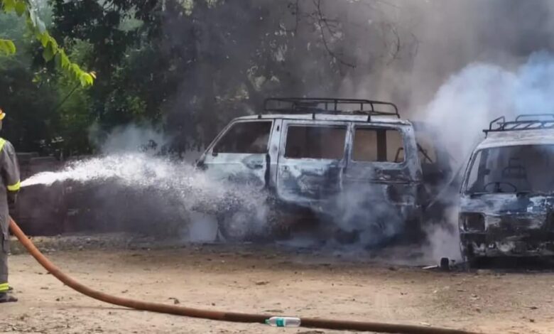 सड़क किनारे खड़ी दो मारुति वैन कारों में लगी भीषण आग, आग में जलकर दोनों कार हुई खाक, वीडियो सोशल मीडिया पर वायरल