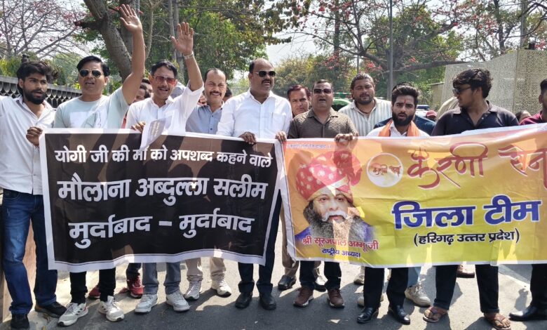 अलीगढ़ में करणी सेना के पदाधिकारियों के द्वारा बिहार के मौलाना सलीम के द्वारा उत्तर प्रदेश के मुख्यमंत्री योगी आदित्यनाथ की माता को लेकर दिए गए बयान के बाद अलीगढ़ में करणी सेना में आक्रोश देखने को मिल रहा है इसको लेकर करणी सैनिकों के द्वारा मौलाना सलीम का आज पुतला दहन किया और उनके द्वारा मांग की गई है मौलाना सलीम का एनकाउंटर किया जाए अगर मौलाना सलीम के खिलाफ कोई कार्रवाई नहीं हुई तो करणी सैनिकों के द्वारा बिहार से मौलाना सलीम को लाने के बाद जूते की माला डालकर उसे गधे पर बिठाकर घुमाया जाएगा तमाम करणी सैनिकों में आक्रोश व्याप्त नजर आरहा है,सभी करणी सैनिको का कहना है लंबे समय से इस तरह की बयानबाजी की जा रही है जिसे बर्दाश्त नहीं किया जाएगा।
