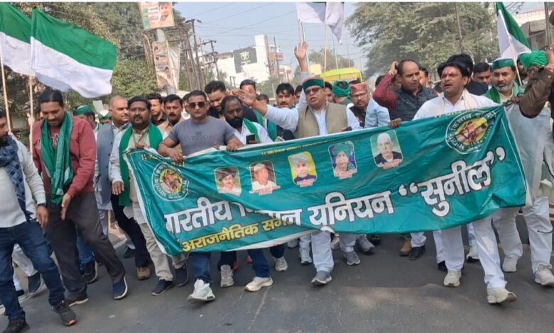 किसानो की समस्याओ को लेकर भाकियू सुनील ने निकाला पैदल मार्च,पुलिस से तीखी नोकझोंक