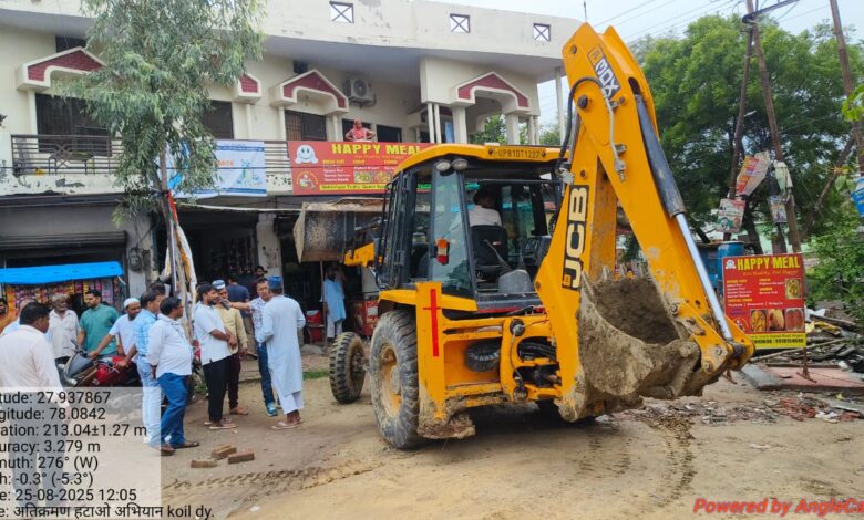 अलीगढ़ : कोल राजवाह की सरकारी भूमि पर वर्षों से कब्जा जमाए बैठे अतिक्रमणकारियों पर सोमवार को प्रशासन ने सख्ती दिखाई। महेशपुर फाटक से लेकर कमिश्नरी तक चिन्हित अवैध अतिक्रमणों को ध्वस्त कराने के लिए सिंचाई विभाग की टीम प्रशासनिक एवं पुलिस बल के साथ दोपहर करीब 12 बजे मौके पर पहुँची। बुलडोज़र देखते ही स्थानीय लोगों में अफरा-तफरी मच गई और कई लोगों ने विरोध भी किया, लेकिन अधिकारियों ने समझा-बुझाकर माहौल को शांत कराया।अधिशासी अभियंता सिंचाई, राजेन्द्र कुमार ने बताया कि शासन की मंशा के अनुरूप सरकारी भूमि पर अवैध कब्जे किसी भी कीमत पर बर्दाश्त नहीं किए जाएंगे। इसी क्रम में 24 व 25 जुलाई को महेशपुर फाटक से कमिश्नरी तक राजवाह पर अतिक्रमण करने वालों को नोटिस जारी कर कब्जा हटाने की चेतावनी दी गई थी। नोटिस के बावजूद कब्जा न हटाने पर प्रशासन को कार्रवाई करनी पड़ी। कार्रवाई के दौरान अचानक हुई बारिश ने काम की रफ्तार थोड़ी धीमी की, लेकिन टीम ने देर शाम तक बुलडोज़र की मदद से सभी चिन्हित अतिक्रमणों को ध्वस्त करा दिया। मौके पर सहायक अभियंता सिंचाई अतुल कुमार गुप्ता, जेई यतेन्द्र प्रताप व अवधेश कुमार, उपराजस्व अधिकारी अवधेश कुमार, हरेश्वर शर्मा, नाहर सिंह सहित अन्य अधिकारी व कर्मचारी मौजूद रहे।