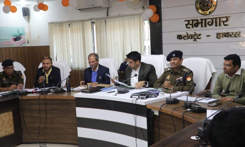 जिलाधिकारी हाथरस एवं पुलिस अधीक्षक हाथरस द्वारा आगामी त्यौहार होलिका दहन, रमजान, रामनवमी, ईद-उल-फितर आदि के दौरान बैठक का किया गया आयोजन