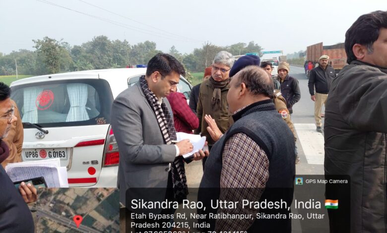 हाथरस।डीएम अतुल वत्स और एसपी चिरंजीवनाथ सिन्हा ने जनपद के मुख्य मार्ग अलीगढ़-एटा राष्ट्रीय मार्ग (एन०एच०-34) पर स्थित