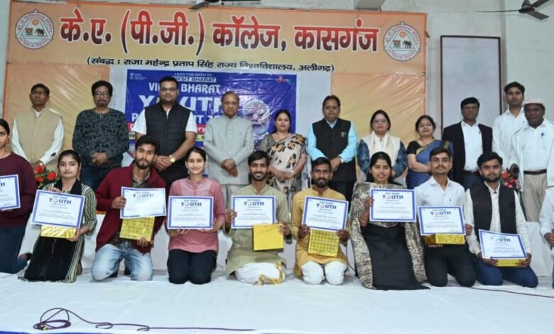 कासगंज। के ए पी जी कॉलेज, कासगंज में ‘विकसित भारत यूथ पार्लियामेंट’ का भव्य आयोजन मेरा युवा भारत कासगंज द्वारा किया गया किया गया। कार्यक्रम का मुख्य विषय आपातकाल के 50 वर्ष : उससे सीखे गए सबक” रहा, जिस पर छात्र-छात्राओं ने गंभीर एवं प्रभावशाली विचार प्रस्तुत किए।