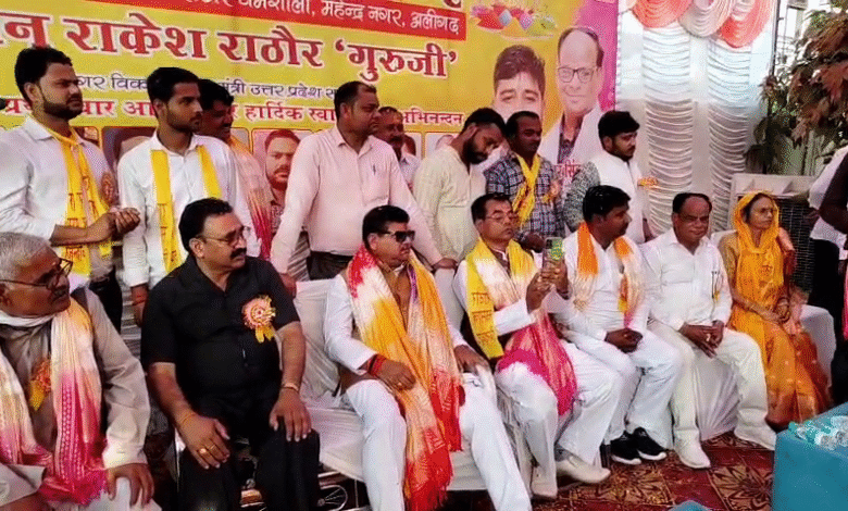 अलीगढ़ राठौर समाज द्वारा होली मिलन समारोह का कार्यक्रम आयोजित किया गया जिसमें मुख्य अतिथि के रूप में राठौर समाज के राज्य मंत्री राकेश राठौर गुरु नगर विकास राज्य मंत्री उपस्थित हुए यह कार्यक्रम बड़े धूमधाम से मनाया गया राकेश राठौर गुरुजी ने समाज में शिक्षा और राजनीतिक हिस्सेदारी के विषय में समाज से निवेदन किया की राजनीति में आगे आए समाज के गंभीर विषयों पर कार्य करें इस कार्यक्रम के संयोजक श्री सम्बर सिंह राठौड़ जिला अध्यक्ष राठौर समाज मुख्य संरक्षण ओमप्रकाश राठौर महामंत्री देवराज राठौड़ कोषाध्यक्ष प्रदीप राठौर प्रवीण राठौर सचिव सोनू राठौर कन्हैयालाल फूलचंद विजय राठौड़ सुशील राठौर संतोष रसिया वाले सुभाष मेडिकल नरेश मास्टर अमर सिंह महेंद्र राठौर मानसिंह राठौर शीला राठौर बसंत लाल डालचंद प्रवीण दीपचंद मुन्नालाल योगेश दीपचंद भगवान सिंह रमेश चंद नेत्रपाल अमर सिंह ब्रजकासुर आदि समाज के हजारों की संख्या में लोग उपस्थित रहे
