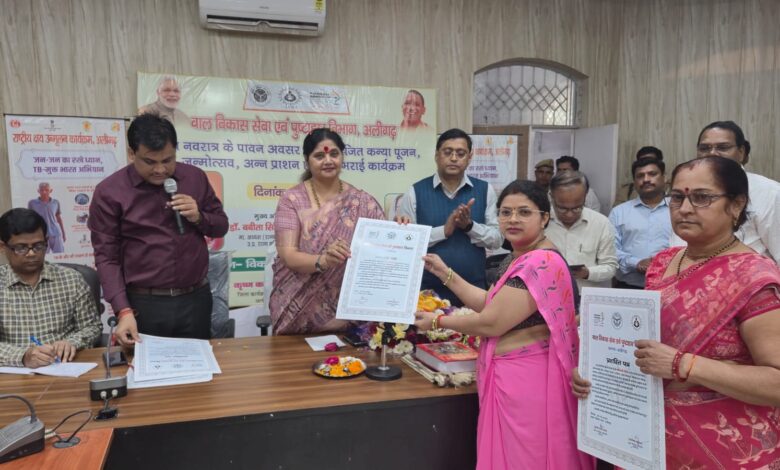 अलीगढ़  मा0 अध्यक्ष (राज्यमंत्री स्तर प्राप्त) उत्तर प्रदेश राज्य महिला आयोग डॉ. बबीता सिंह चौहान जी द्वारा विकास भवन सभागार में चैत्र नवरात्र के पावन अवसर पर कन्या पूजन, जन्मोत्सव, अन्नप्राशन, गोदभराई, पोषण पोटली एवं आयुष्मान कार्ड वितरण कार्यक्रम आयोजन कर सभी को लाभान्वित किया गया।इस अवसर पर मा0 अध्यक्ष ने कहा कि कन्या पूजन की परंपरा भारतीय संस्कृति की आत्मा है। जिस माता के आंचल से कन्या जन्म लेती है, वह स्वयं पूजनीय होती है। आज के कार्यक्रम में माता और कन्या दोनों का सम्मान कर समाज को नारी गरिमा का संदेश दिया जा रहा है। भारतीय संस्कृति में वर्णित 16 संस्कार मानव जीवन को मर्यादित और अनुशासित बनाते हैं, जिसमें जन्मोत्सव प्रथम संस्कार है। संस्कार और संस्कृति ही प्राचीन भारत की पहचान है। सरकार महिलाओं को स्वावलंबी, आत्मनिर्भर और सशक्त बनाने के लिए निरंतर कार्य कर रही है। कन्या सुमंगला योजना, बेटी बचाओ-बेटी पढ़ाओ, प्रधानमंत्री मातृ वंदना योजना, सामूहिक विवाह योजना जैसी योजनाएं बालिकाओं और महिलाओं के जीवन में सकारात्मक परिवर्तन ला रही हैं। आज प्रदेश सुरक्षित हाथों में है, छात्राएं बेखौफ होकर शिक्षा प्राप्त कर रही हैं और महिलाएं अपने कार्यों का बखूबी निर्वहन कर रही हैं।डॉ0 चौहान ने कहा कि पहले गंभीर रोगों से पीड़ित रोगियों की उपेक्षा की जाती थी। वर्तमान सरकार में सभी रोगियों का समुचित उपचार और देखभाल की जा रही है। क्षय रोगियों को पोषण पोटली और डीपीटी के माध्यम से सीधे धनराशि उनके खातों में भेजी जा रही है। उन्होंने चिंता व्यक्त करते हुए कहा कि अभी भी किशोरियां अपने स्वास्थ्य के प्रति जागरूक नहीं हैं।