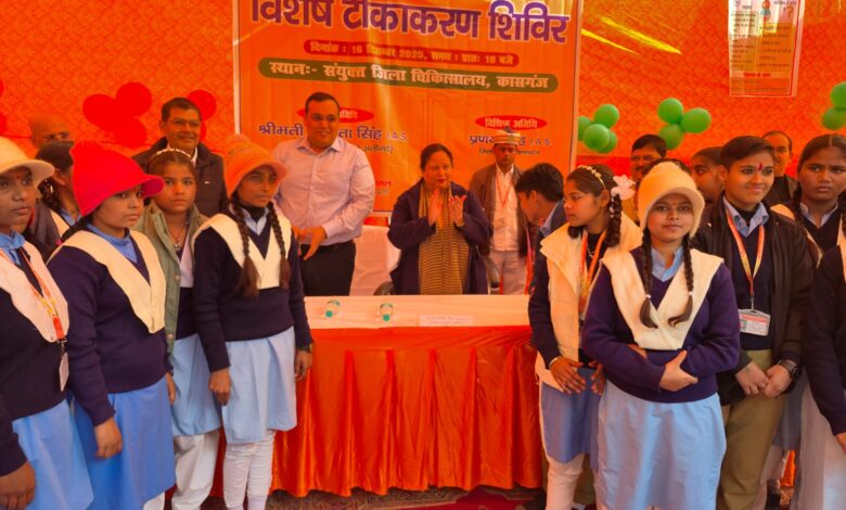 कासगंज में एचपीवी वैक्सीन कैंप का शुभारम्भ, 100 छात्राओं को लगी प्रथम डोज