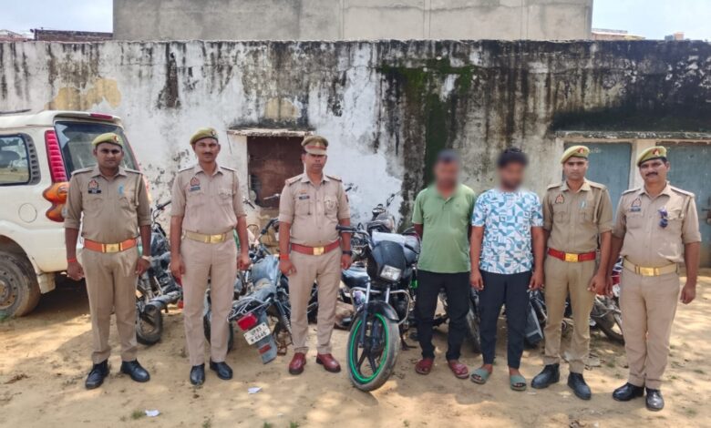 हाथरस। पुलिस अधीक्षक चिरंजीव नाथ सिन्हा के आदेशानुसार चलाये जा रहे संदिग्ध व्यक्ति/वाहन चेकिंग अभियान के क्रम में अपर पुलिस अधीक्षक के निर्देशन एवं क्षेत्राधिकारी नगर के निकट पर्यवेक्षण में एसओजी टीम व थाना कोतवाली नगर पुलिस की संयुक्त कार्यवाही मे चेकिंग के दौरान कार्यवाही करते हुए नवीपुर बम्बे से दो अंतर्जनपदीय वाहन चोरों को गिरफ्तार करने में सफलता प्राप्त हुई है । जिनके नाम मुजाहिद पुत्र इशाक निवासी सराय बरला थाना बरला जनपद अलीगढ, करन यादव उर्फ छोटे पुत्र महताब सिंह निवासी सिकन्दरपुर थाना अकराबाद जनपद अलीगढ है।जिनके कब्जे/निशादेही से चोरी की चौदह मोटरसाईकिल व छह मोटरसाइकिल के इंजन व चैसिस,एक तमंचा 315 बोर व एक जिन्दा कारतूस 315 बोर बरामद हुए है । अभियुक्तगणो की गिरफ्तारी एवं बरामदगी के सम्बन्ध में थाना कोतवाली नगर पुलिस द्वारा आवश्यक विधिक कार्यवाही की जा रही है । विगत 3-4 महीनों से जनपद मे मोटर साइकिल चोरी की घटनाएँ हो रही थी । जिस पर पुलिस अधीक्षक चिरंजीव नाथ सिन्हा द्वारा अपर पुलिस अधीक्षक के निर्देशन मे व क्षेत्राधिकारी नगर के नेतृत्व मे विभिन्न टीमो का गठन किया गया था तथा एसओजी टीम को भी लगाया गया था । जिसके उपरांत पुलिस टीमो द्वारा यूपी 112 से डेटा लिया गया, जिसका अवलोकन करने के उपरांत जहाँ-जहाँ से मोटरसाइकिलों की घटनाएं हुई, उनके हॉटस्पॉट चिन्हित कर गूगल मैप के माध्यम से उन स्थानो को चिन्हित किया गया, जहाँ से ज्यादा मोटरसाइकिल चोरी हुई है । इस तरह से एक कॉर्डिनेटिड मैप तैयार किया गया । चिन्हित हॉटस्पॉट पर थाना कोतवाली नगर पुलिस व एसओजी टीम को लगाया गया । इसके साथ ही पुलिस द्वारा जनपद मे लगे 155 सीसीटीवी कैमरो का अवलोकन किया गया तो करन यादव उर्फ छोटू व मुजाहिद का नाम प्रकाश मे आया । जिसमे करन यादव उर्फ छोटू मोटरसाइकिल चोरी करने मे एक्सपर्ट है तथा मुजाहिद मोटर साइकिल का मिस्त्री है, जो चोरी की मोटरसाइकिल को कटवाकर बेचता था । गिरफ्तार अभियुक्तगणों द्वारा पूछताछ में जुर्म का इकबाल करते हुये बताया कि वह लोग जगह जगह से मोटर साइकिल चोरी करके उनको खोलकर अलग अलग पार्टस करके कबाड मे बेच देते है । अभियुक्त मुजाहिद उपरोक्त द्वारा बताया कि वह मोटर साइकिल का मिस्त्री है । होन्डा मोटरसाइकिल नं0 UP 8 BB 0370 के सम्बन्ध मे पूछने पर बताया कि मोटरसाइकिल पर लगी नं0 प्लेट फर्जी है उनके द्वारा यह मोटरसाइकिल करीब 20 दिन पहले डीआरबी तिराहे से चोरी की थी । जिसके सम्बन्ध मे थाना कोतावाली नगर पर मु0अ0सं0 294/25 धारा 303(2) बीएनएस पंजीकृत है । गिरफ्तार अभियुक्तगणों के कब्जे/निशादेही पर जनपद हाथरस, एटा, अलीगढ़, व कासगंज से चोरी की हुई मोटरसाइकिल व मोटरसाइकिल के पार्ट्स बरामद हुए है । बरामद मोटरसाइकिलो के 
