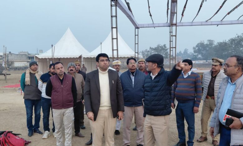 24 जनवरी 2026 को पी0सी0 बागला डिग्री कॉलेज, हाथरस में आयोजित होने वाले भव्य कार्यक्रम की तैयारियों के दृष्टिगत जिलाधिकारी अतुल वत्स ने कार्यक्रम स्थल का स्थलीय भ्रमण कर व्यवस्थाओं का जायजा लिया