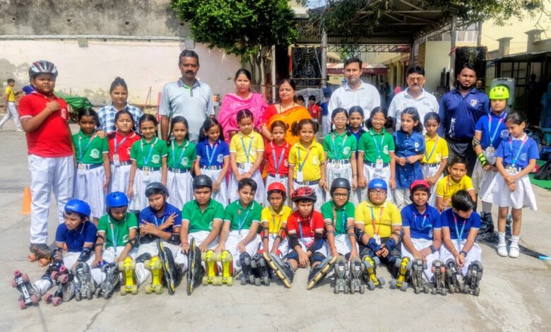 धर्म समाज बाल मंदिर सीनियर सेकेंडरी स्कूल अलीगढ़ में इंटर हाउस शॉर्ट रेस स्केटिंग प्रतियोगिता का शुभारंभ प्रबंधक संजय कुमार गोयल ने किया