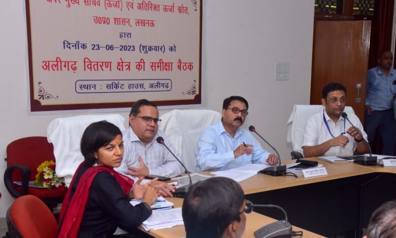 अलीगढ़ – अपर मुख्य सचिव ऊर्जा एवं अतिरक्त ऊर्जा स्रोत विभाग उत्तर प्रदेश शासन श्री महेश गुप्ता द्वारा सर्किट हाउस सभागार में मण्डलायुक्त नवदीप रिणवा के साथ मण्डलीय समीक्षा बैठक की गयी। उन्होंने कहा कि सूबे में बिजली की कमी नहीं है। उपभोक्ता अपना बिल जरूर जमा करें। जनसामान्य चोरी से बिजली जलाने वालों की जानकारी देकर अच्छे नागरिक का परिचय दें। अभियंता गड़बड़ी तत्काल दूर कराकर आपूर्ति बहाल करें। उद्योगों को रिकार्ड बिजली दी जा रही है। एसीएस ने वाणिज्यिक और तकनीकी मामलों की जानकारी लेते हुए राजस्व वसूली की भी समीक्षा की। अधीक्षण अभियंताओं से पूछा कि गड़बड़ी होने पर ठीक कराने में कितना समय लगता है। अधीक्षण अभियंता ने बताया कि छोटे फाल्ट आधे घंटे के अंदर ठीक करा दिए जाते हैं, लेकिन बड़े फाल्ट ठीक कराने में समय लगता है।