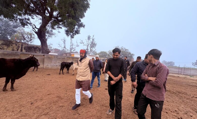 मा. सदस्य गौ सेवा आयोग ने अस्थाई गौ आश्रय स्थल का औचक निरीक्षण