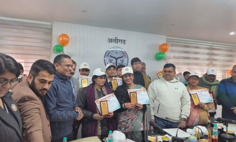 अलीगढ़ राष्ट्रीय मतदाता दिवस के अवसर पर जिले की विधानसभा क्षेत्र 75-कोल, 74-छर्रा एवं 76-शहर में लोकतंत्र को सशक्त बनाने में उल्लेखनीय योगदान देने वाले उत्कृष्ट मतदाताओं, बूथ लेवल अधिकारियों एवं सुपरवाइजरों को जिला निर्वाचन अधिकारी संजीव रंजन द्वारा कलक्ट्रेट में आयोजित भव्य कार्यक्रम में सम्मानित किया गया। कार्यक्रम का उद्देश्य नागरिकों को उनके मताधिकार के प्रति जागरूक करना और निर्वाचन प्रक्रिया में सक्रिय सहभागिता के लिए प्रेरित करना रहा।