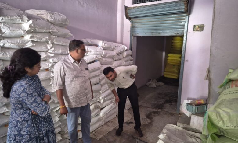 दिनांक 14.10.2025 को निखिल देव तिवारी, जिला कृषि अधिकारी, प्रतीक्षा कटारा, नायब तहसीलदार, सदर, राहुल प्रताप सिंह सिंह, व.प्रा.स-ए एवं शिवराज सिंह, व.स. द्वारा संयुक्त रूप से मुरसान स्थित उर्वरक विके्रता मै. रघुवर दयाल रामसेवक के यहाॅं आकस्मिक छापेमारी की गयी। निरीक्षण के समय फर्म के अभिलेखों पर गोदाम का अंकन न होने के कारण दो गोदामों को सील कर दो नमूना ग्रहित किया गया हैं।