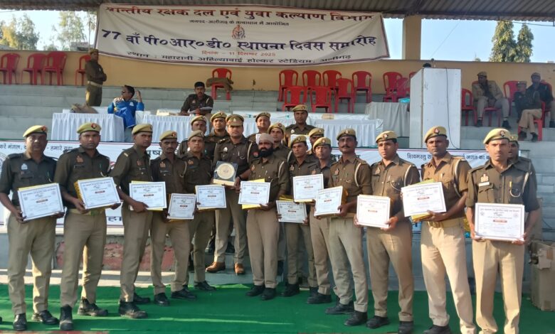अलीगढ़ प्रान्तीय रक्षक दल एवं युवा कल्याण विभाग द्वारा 77 वॉ जनपद स्तरीय पीआरडी स्थापना दिवस समारोह गुरूवार को महारानी अहिल्यावाई होल्कर स्टेडियम अलीगढ में मनाया गया। स्थापना दिवस में सभी विकास खण्डों, ग्रामीण कम्पनी के पीआरडी महिला एवं पुरूष स्वयं सेवकों द्वारा प्रतिभाग किया गया। स्थापना दिवस परेड की सलामी माननीय विधायक कोल श्री अनिल पाराशर द्वारा ली गई। एवं माननीय विधायक ने परेड में उत्कृष्ट प्रर्दशन करने वाले पीआरडी स्वयं सेवकों को पुरस्कृत किया।माननीय विधायक ने पीआरडी जवानों को संबोधित करते हुऐ कहा कि पीआरडी संगठन बहुत पुराना है। 1948 में इसकी स्थापना हुई थी। पीआरडी जवानों को फिट रखने के लिये इस प्रकार के कार्यक्रम कराये जाने की आवश्यकता है। इस मौके पर जिला विकास अधिकारी आलोक आर्य भी उपस्थित रहें। जिला युवा कल्याण एवं प्रादेशिक विकास अधिकारी जयपाल सिंह द्वारा अतिथियों का वैज कैम्प लगाकर तथा प्रतीक चिन्ह भेंट कर स्वागत किया गया ।कार्यक्रम के आयोजन में पुलिस विभाग के प्रशिक्षक, समस्त क्षेत्रीय युवा कल्याण एवं प्रादेशिक विकास दल अधिकारी एंव वरिष्ठ सहायक उपस्थित रहें। कार्यक्रम के अन्त में जिला युवा कल्याण एंव प्रादेशिक विकास अधिकारी अलीगढ द्वारा सभी का धन्यवाद ज्ञापन किया गया।