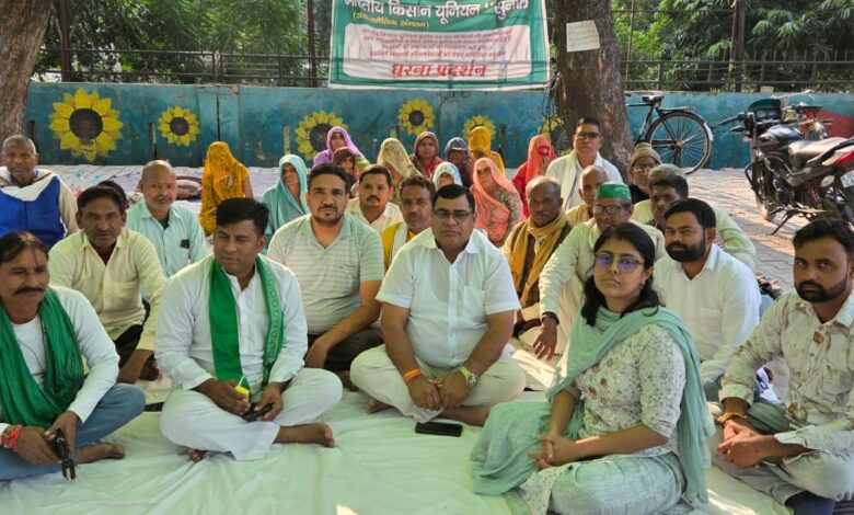 अलीगढ़ जनपद के गांव चिलकोरा में सरकारी चारागाह, मरघट और अन्य दीगर बंजर जमीनों पर हो रहे भूमाफियाओं के अवैध कब्जों के विरोध में भारतीय किसान यूनियन सुनील का पिछले 30 दिनों से कमिश्नरी पर जारी धरना उप जिलाधिकारी कोल के आश्वासन पर आज हुआ समाप्त