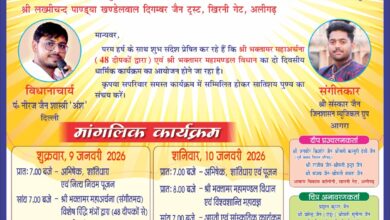 बुधवार खिरनी गेट स्थित अरिहंत अपार्टमेंट में प्रेस विज्ञप्ति में मधु जैन,पूर्वी जैन,ऋतु जैन ,नीता जैन ने संयुक्त रूप से…
