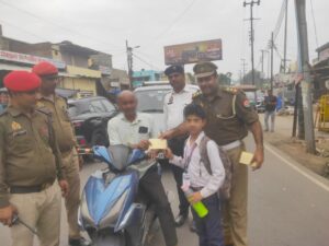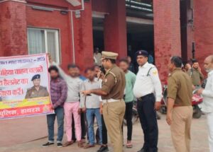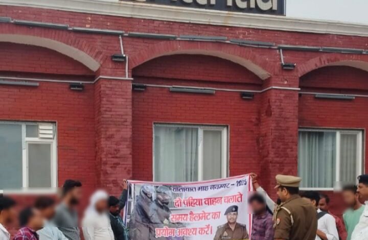 हाथरस। पुलिस अधीक्षक चिरंजीव नाथ सिन्हा के निर्देशन में प्रभारी निरीक्षक यातायात सुभाष यादव द्वारा “यातायात माह-2025” के तहत थाना कोतवाली नगर क्षेत्रान्तर्गत तालाब चौराहा व हाथरस सिटी स्टेशन पर नुक्कड सभा/जागरूकता कार्यक्रम का आयोजन किया गया । कार्यक्रम के दौरान यातायात पुलिसकर्मी, टैक्सी/टैम्पो/ई-रिक्शा चालक एवं आने-जाने वाले आमजन मौजूद रहे । कार्यक्रम के दौरान प्रभारी निरीक्षक यातायात द्वारा उपस्थित समस्त चालकों एवं आमजन को यातायात नियमों की जानकारी देकर जागरूक किया गया तथा सभी से यातायात नियमों का पालन करने की अपील की गई । इस दौरान प्रभारी यातायात द्वारा बताया गया कि आये दिन सड़क हादसे होते हैं जिसमें लोगों की जान चली जाती है इसका सबसे प्रमुख कारण यातायात नियमों की जानकारी न होना या जानकारी होने के बाद भी उसका पालन न करना है । वाहन चलाते समय हेलमेट, सीटबेल्ट का उपयोग अवश्य करें, भीड़ वाले क्षेत्र में वाहन को निर्धारित गति में चलायें, नशे की हालत में व मोबाइल फोन पर बात करते हुए वाहन चलाने से बचें, स्टंट बाइकिंग से बचें, वाहनों में काली फिल्म, हूटर, प्रेशर हार्न का प्रयोग न करें, वाहन की क्षमता से अधिक सवारी ना बैठायें, मोडीफाइड साइलेंसर का प्रयोग न करें, गलत दिशा में न चलें । दुर्घटना से बचने के लिए यातायात नियमों का पालन अनिवार्य रूप से करें । यातायात नियमों का पालन करने से सड़क दुर्घटनाएं कम होंगी तथा लोग सुरक्षित रहेंगे । इसी क्रम मे यातायात नियमो का उल्लंघन करने वाले वाहन चालको को स्कूली बच्चो द्वारा बनाये गये यातायात जागरुकता पोस्टकार्ड देकर उनको यातायात नियमों का पालन करने हेतु बताया गया । तथा कार्यक्रम मे उपस्थित लोगो को पैम्फलेट्स वितरित किये गये जिस पर विस्तार से सभी यातायात नियमों का उल्लेख है तथा सभी से इस यातायात माह को सफल बनाने हेतु सहयोग करने की अपील की गयी ।