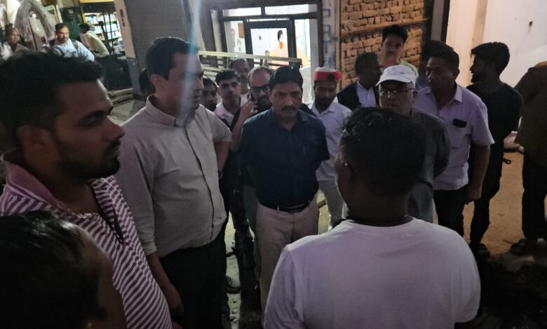नाले के कटान के कारण दुकान में भरे पानी को देखने पहुँचे नगर आयुक्त-युद्ध स्तर पर दुकान के बेसमेन्ट से नगर निगम करा रहा जलनिकासी