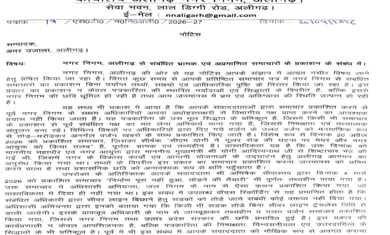 नगर निगम, अलीगढ़ की ओर से यह नोटिस आपके संज्ञान में अत्यंत गंभीर विषय लाने