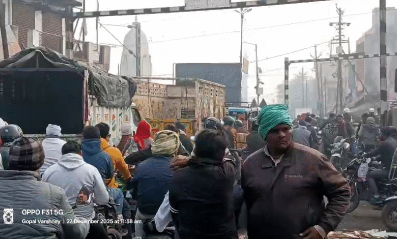 हाथरस शहर के इगलास रोड पर अतिक्रमण से जाम की समस्या गंभीर
