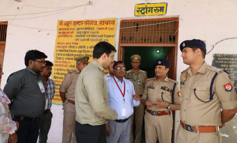 पुलिस अधीक्षक हाथरस एवं जिलाधिकारी हाथरस द्वारा संयुक्त रूप से जनपद हाथरस में उत्तर प्रदेश उ0नि0 नागरिक पुलिस सीधी भर्ती-2025 की लिखित परीक्षा को सकुशल, नकलविहीन एवं शांतिपूर्ण ढंग से संपन्न कराये जाने के दृष्टिगत परीक्षा केंद्रों का भ्रमण/निरीक्षण कर सुरक्षा व्यवस्था/ड्यूटी में लगे अधिकारी/कर्मचारीगणों को दिए आवश्यक दिशा-निर्देश